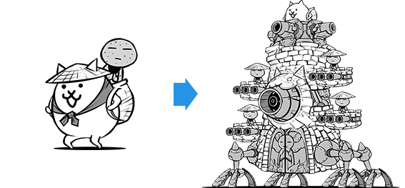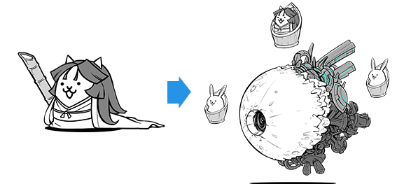 據說在下雪時,戴上寫有心願的斗笠,就能幫我們實現願望的神秘組織 可給予天使與黑色敵人超大傷害(範圍攻擊) 可愛的外表卻有著不俗的傷害,加上短暫的冷卻時間,讓斗笠地藏佇立於貓咪系列的強者屹立不搖,對於黑色與天使敵人的傷害更是不凡,是位十分強勢的貓咪。
