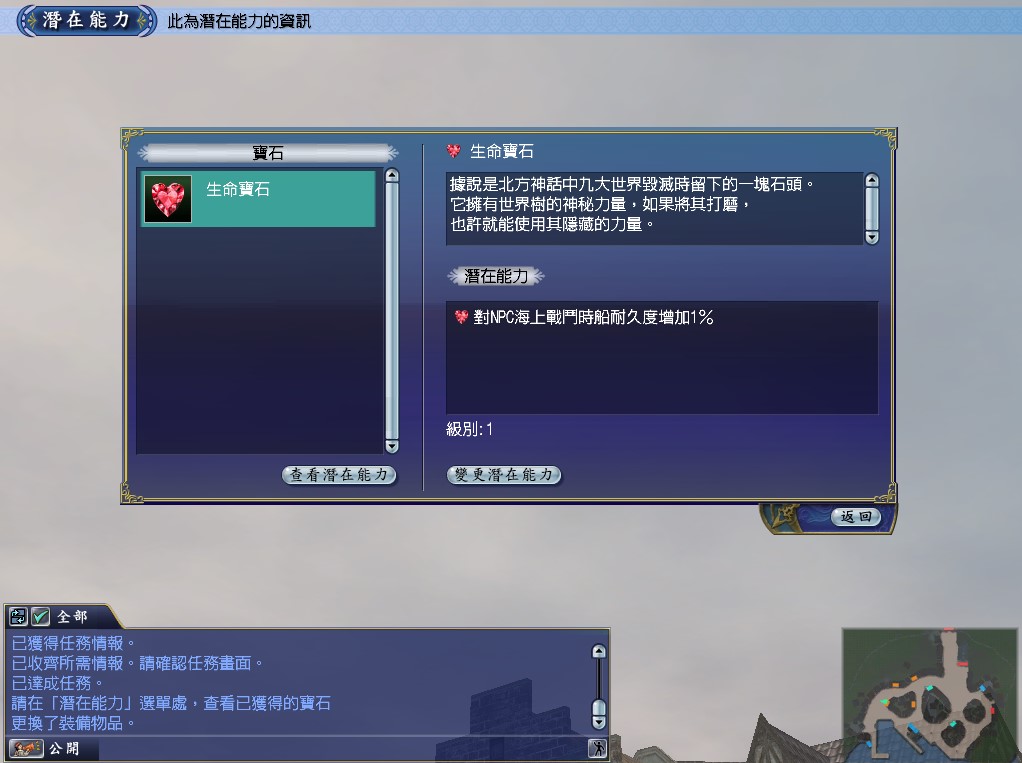可以在潛在能力畫面中查看已獲得的寶石及發動中的潛在能力