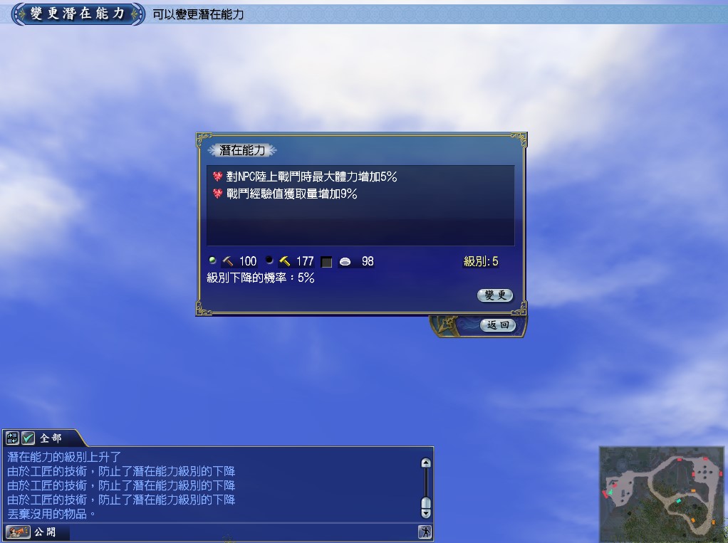 完成前置任務後,於人物選單中將追加新的項目「潛在能力」。