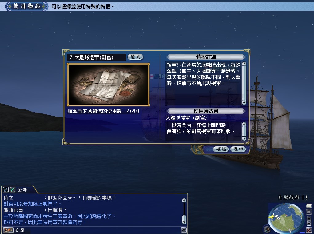 另外,被通緝中的玩家無法從「來自航海士的感謝信」的增益清單中選擇【大艦隊援軍(副官)】。