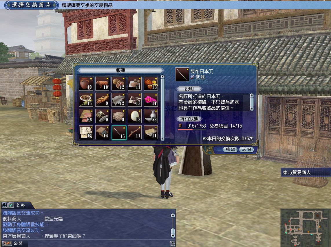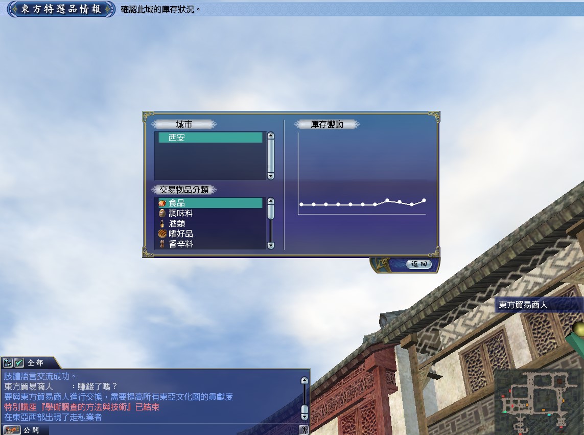 和東方貿易商人講話,可以交換東亞交易品和東方特選品。